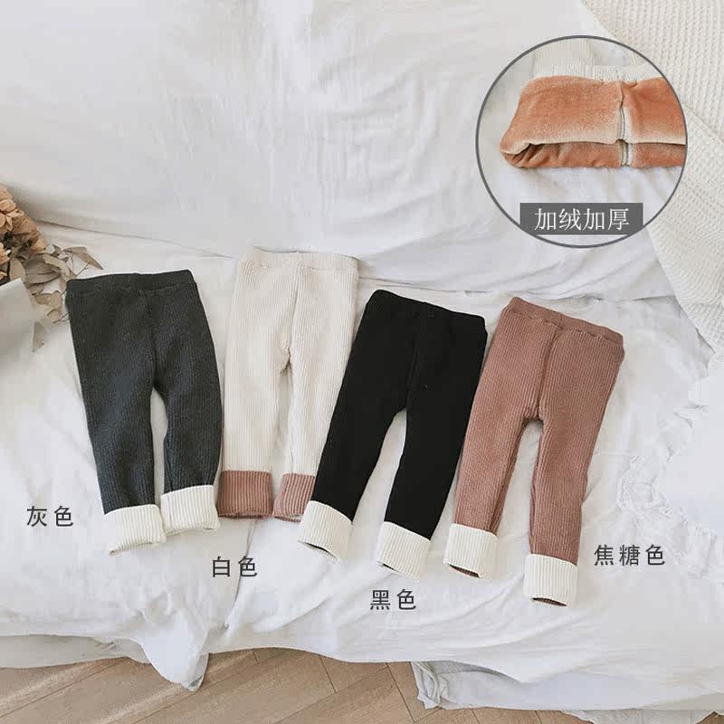 Children's inner pants Men and women's autumn and winter velvet warm pit strip knitted casual pants Korean version of the female baby thickened pants