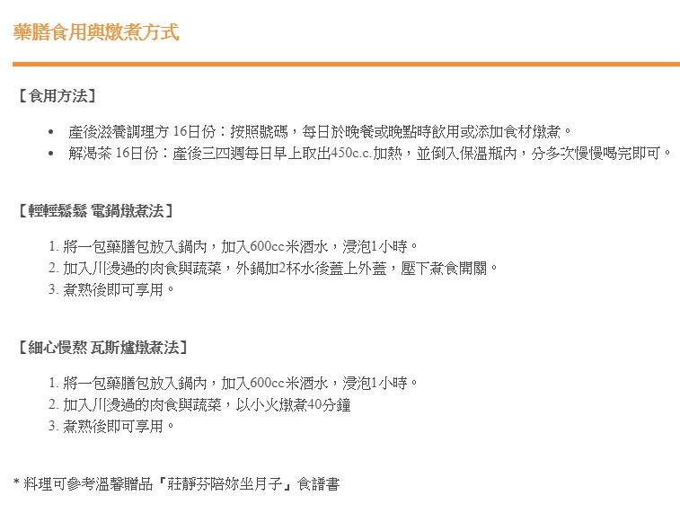 The list of ingredients: