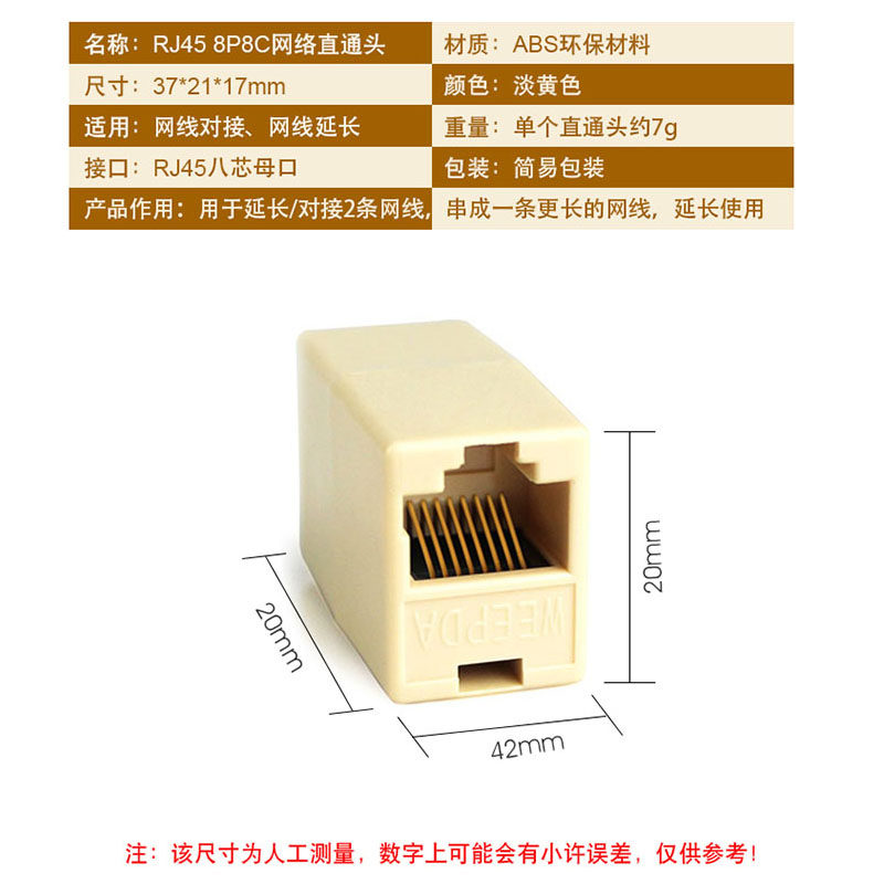 RJ45 network connector to connector network line dual-channel straight through human head model network route extension 8 core plug network interface