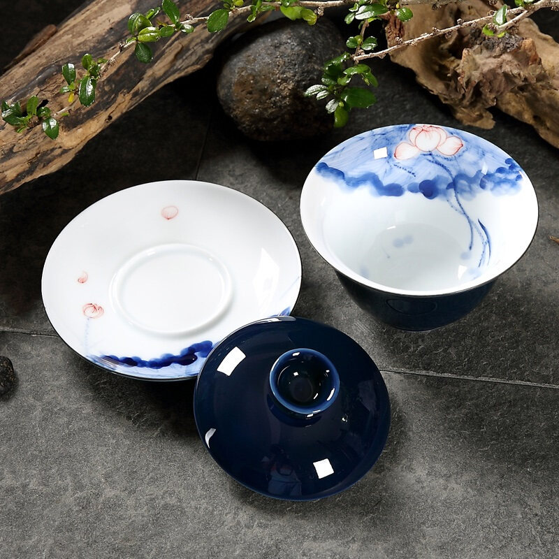 Hand painted lid bowls-lotus-style hand-painted lid bowls-bamboo rhymes hand-painted lid bowls-landscape style hand-painted tea cups-lotus flowers (single) hand-painted cup of tea-bamboo rhyme (single) hand painted tea cup-landscape style (single)
