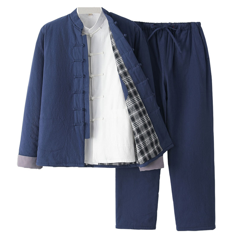 Tang Loaded Men's Cotton Padded Jacket Retro China Wind Men's Clothing Winter Middle Aged Cotton Linen Suit Chinese Cotton Clothing Tray Buttoned Jacket Man