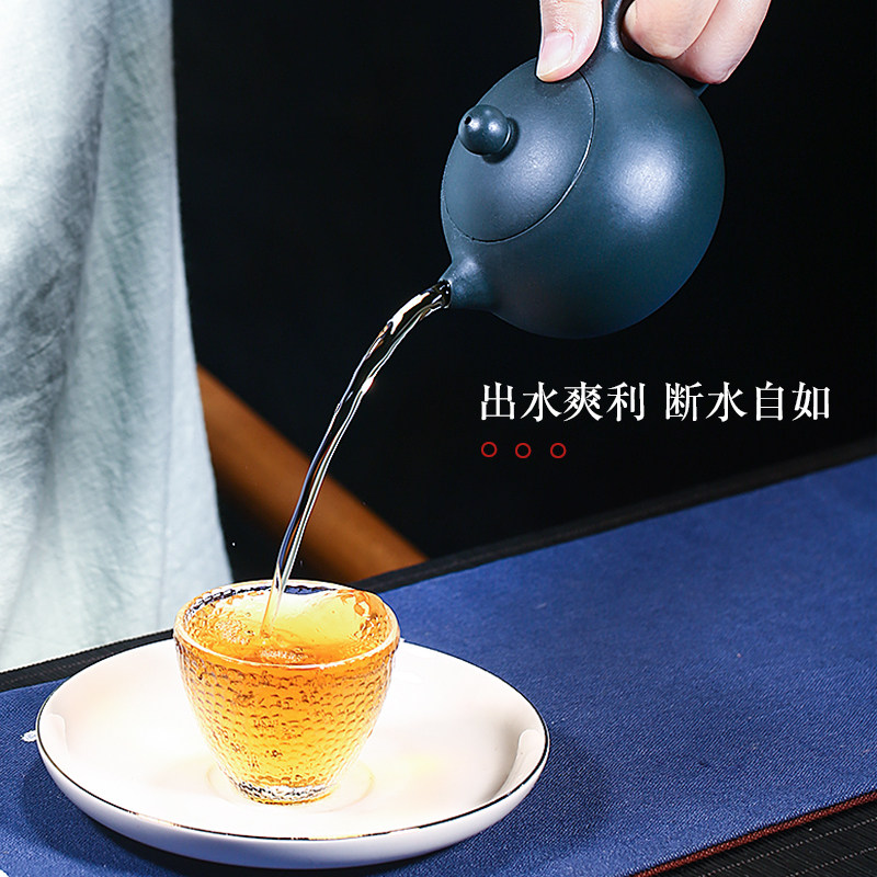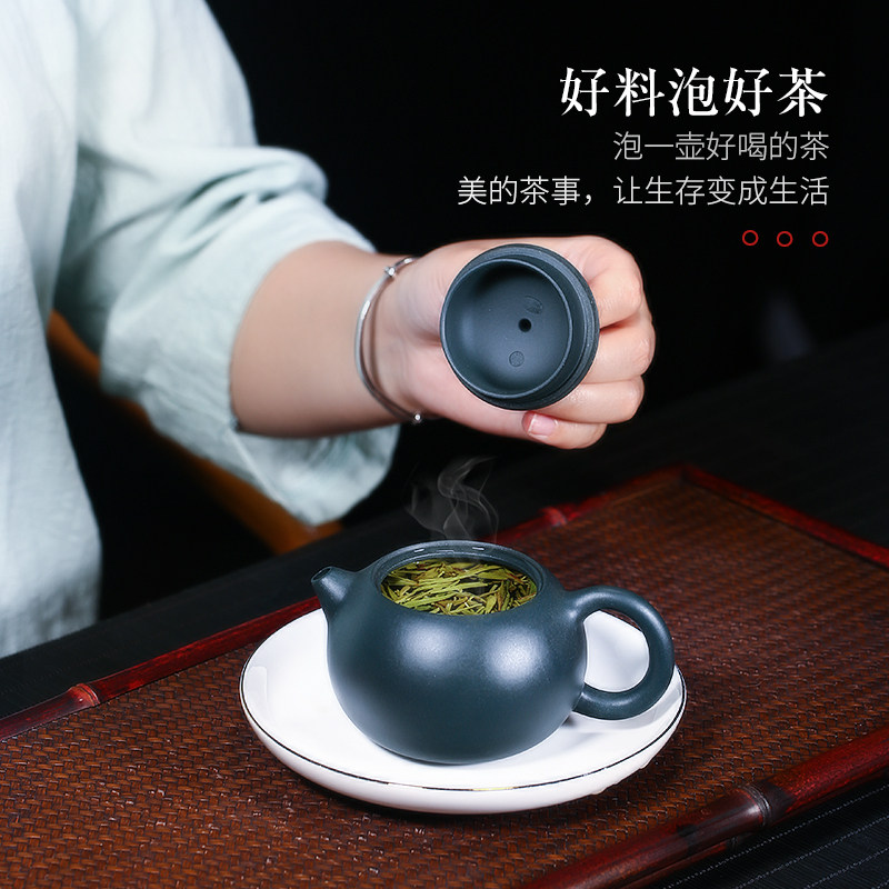 Yixing purple sand pot Authentic pure handmade famous dark green mud Xishi tea pot small set single household tea set