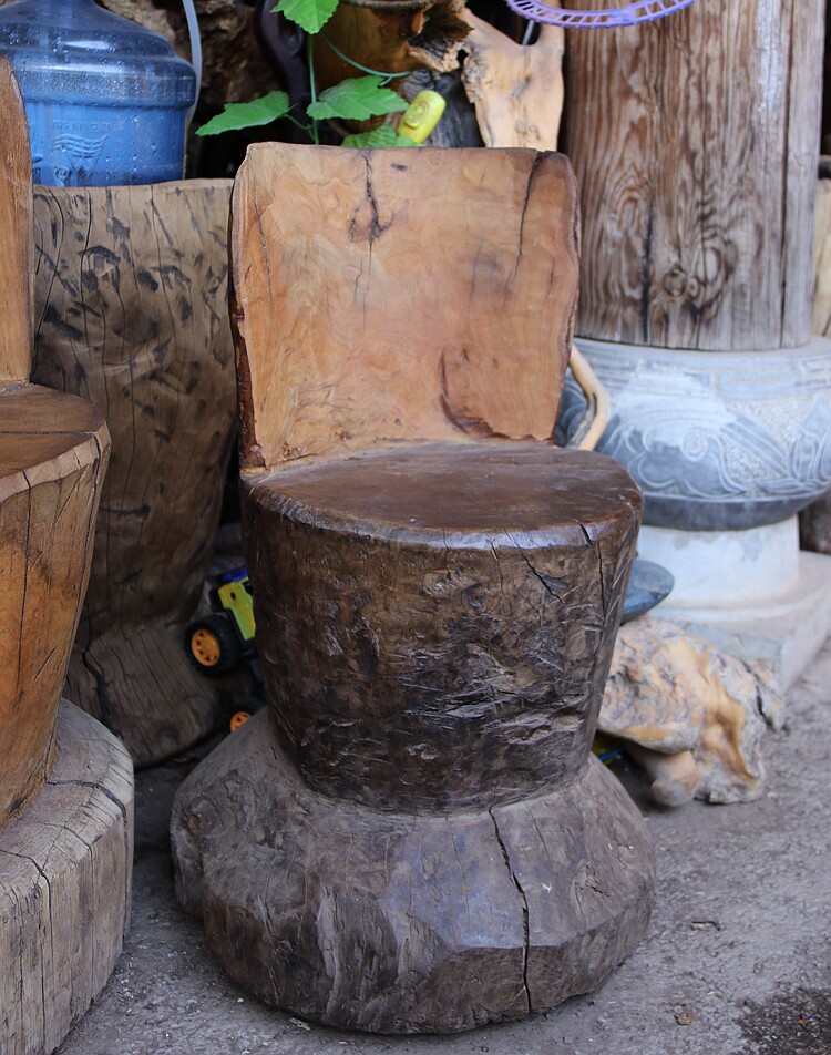 Retro solid wood chair round back chair log tea table and chair outdoor courtyard art low stool indoor balcony stool