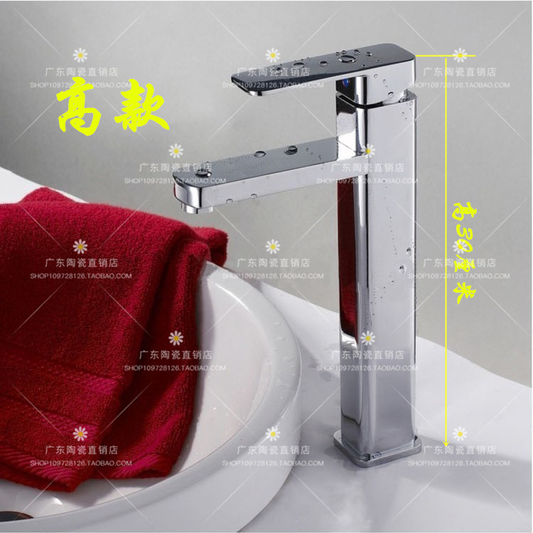 Square hot and cold water ceramic basin faucet full copper tube washbasin faucet art basin faucet high and low models