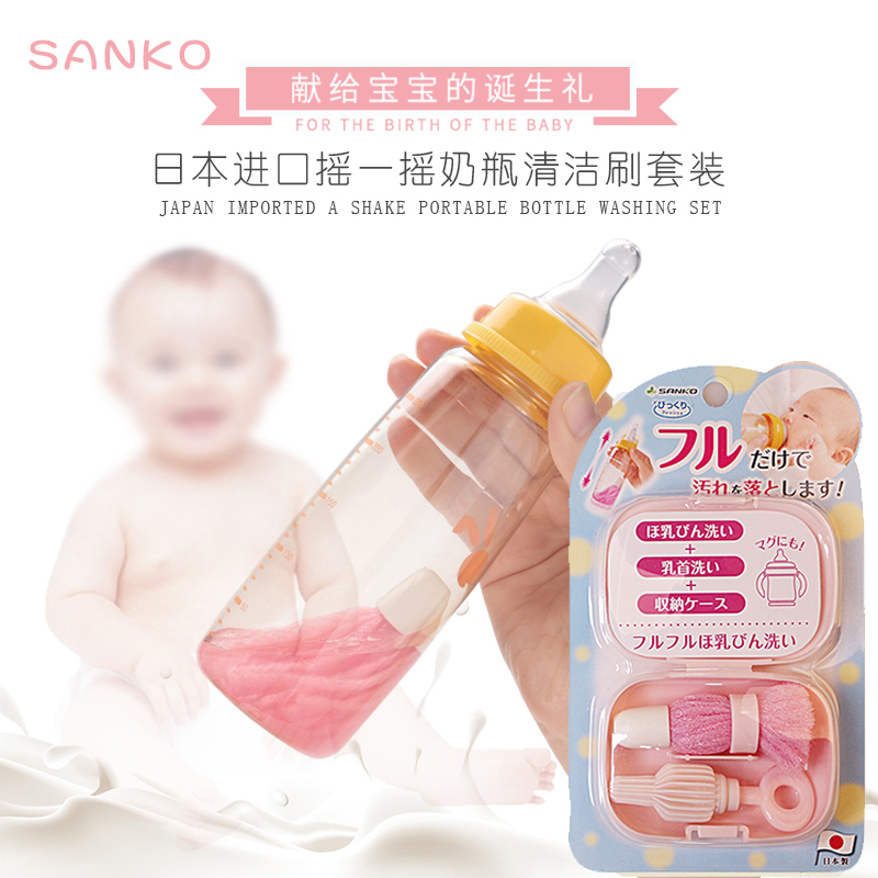 Japan imports Sanko creative shake a bottle brushed baby wash bottle brushed out of portable wash bottle cleaning brush