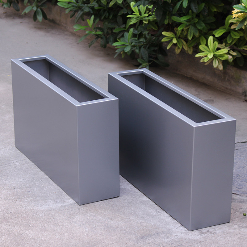 Stainless steel flower pot long flower pot outdoor flower box dark gray flower trough square tree pool paint pot long trough