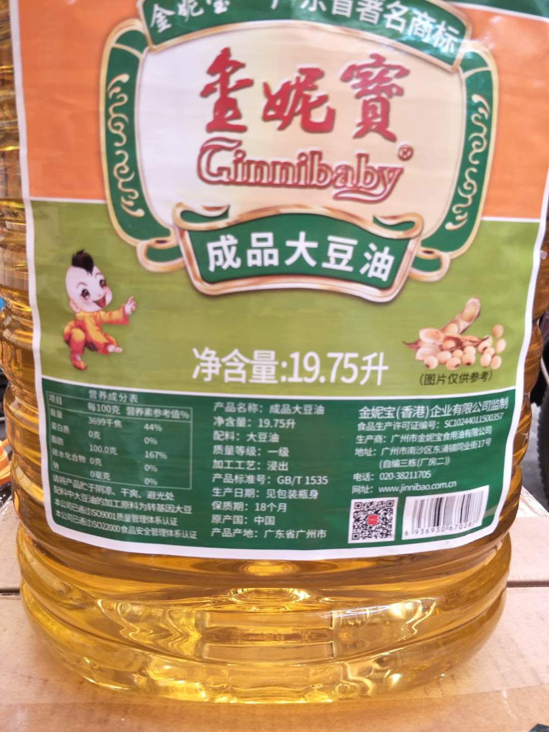 Hong Kong Jinnibao edible soybean oil 19 75L Guangdong famous trademark