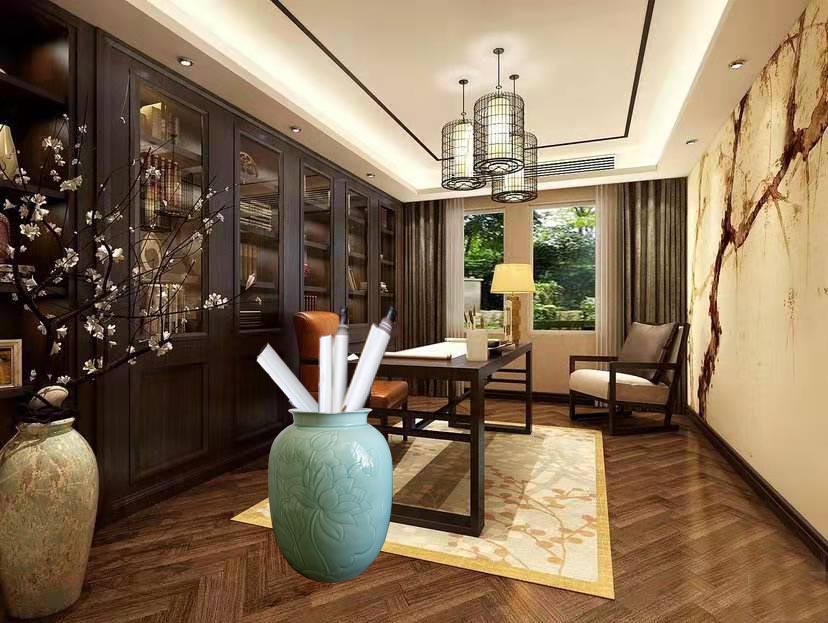 New Chinese pure handmade green flower porcelain large number painting and calligraphy barrel painting cylinder scroll cylinder book house containing floor swinging piece modern