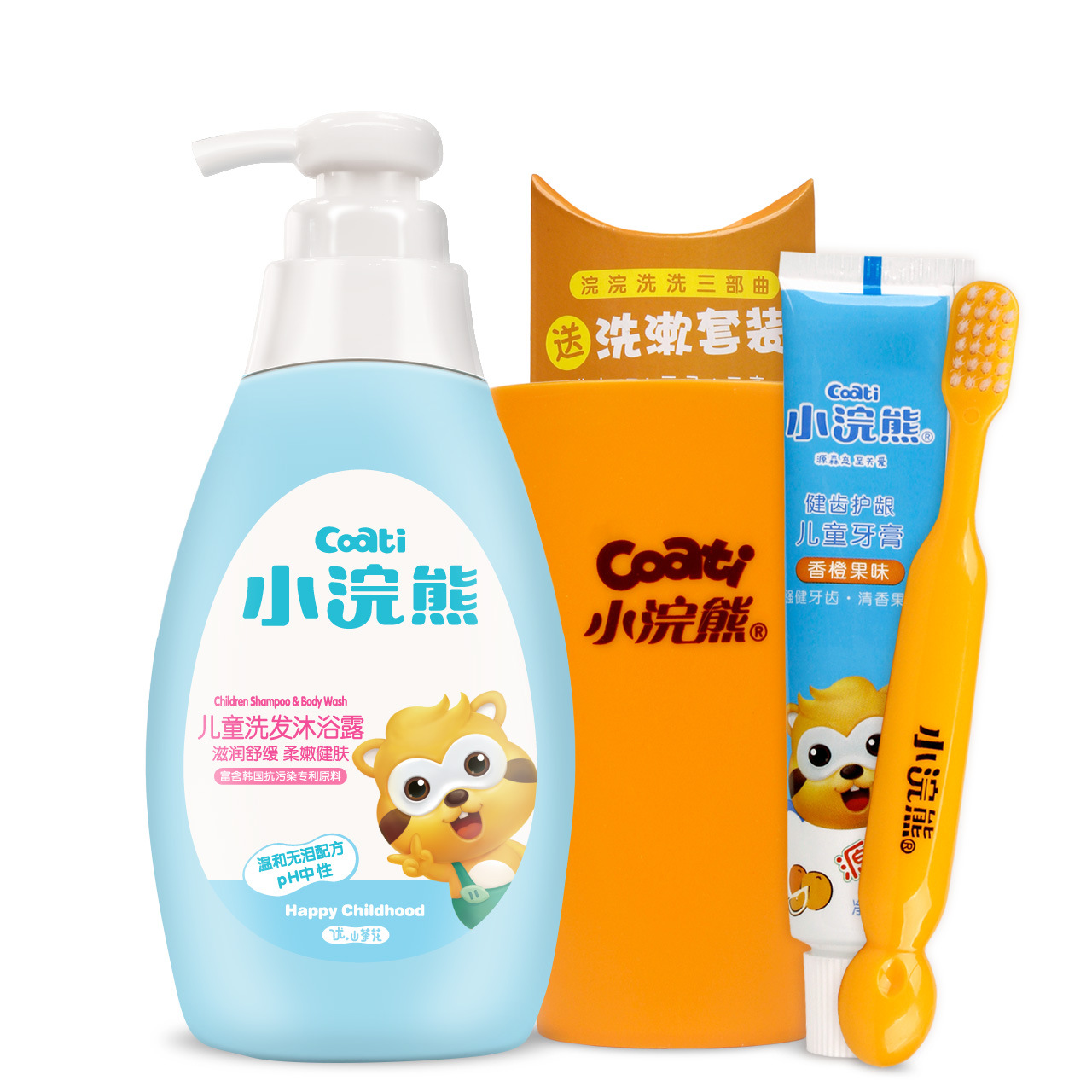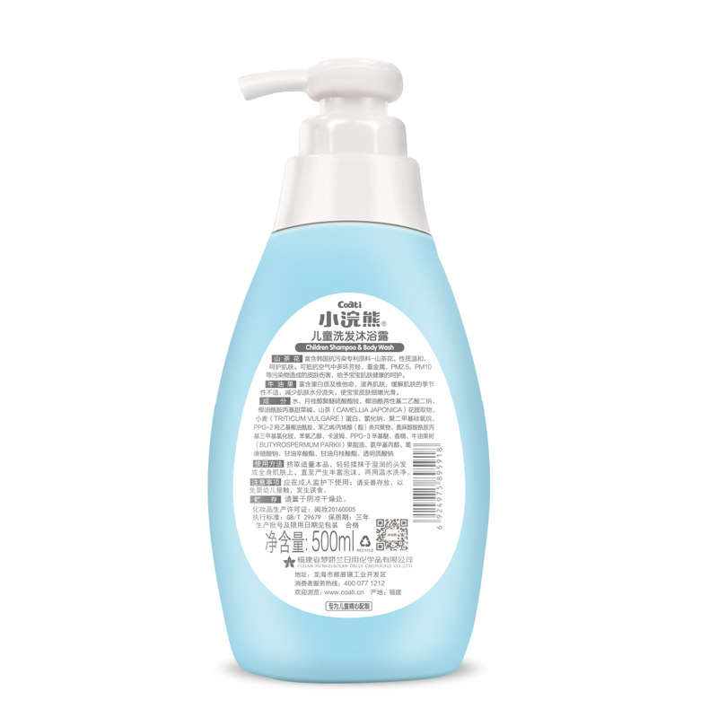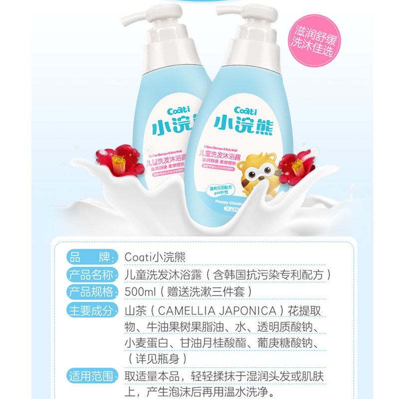 Baby shampoo and shower gel 2-in -1 500ml wash set small raccoon camellia baby shower gel