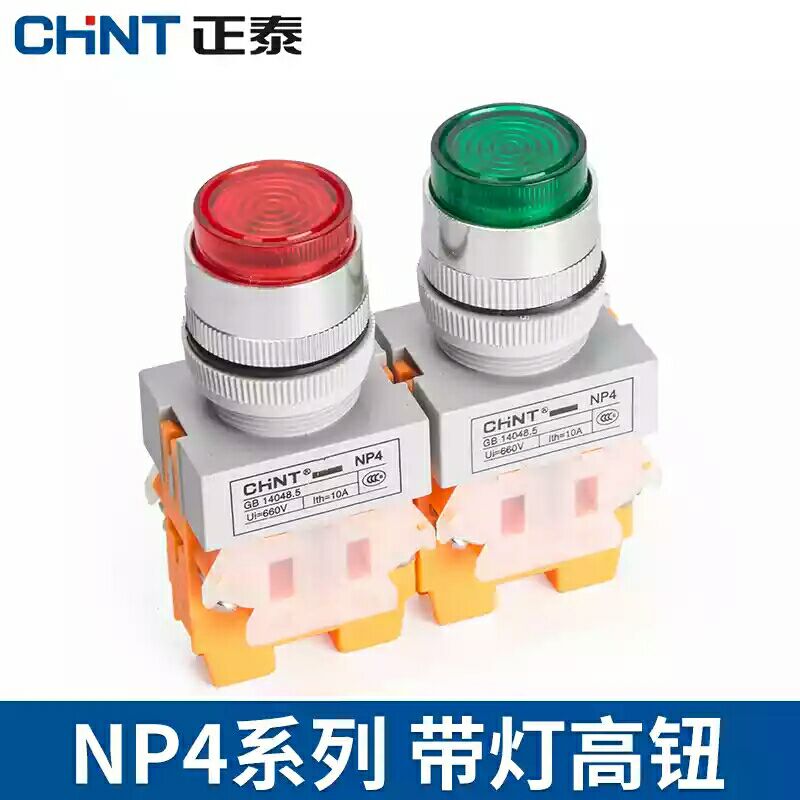 Zhengtai button switch with lamp NP4-11DN self-recovering flat head 24V220V380 red green yellow 1 normally open 1 normally closed