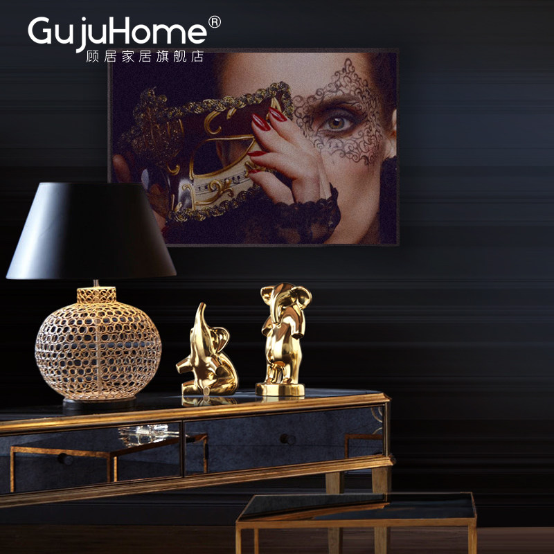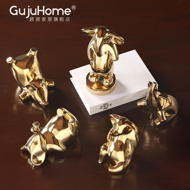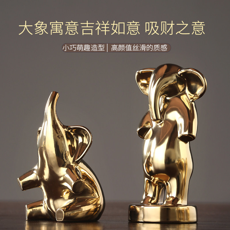 Modern and simple North golden European ceramic elephant decoration Home living room TV cabinet decoration Children's room soft decoration