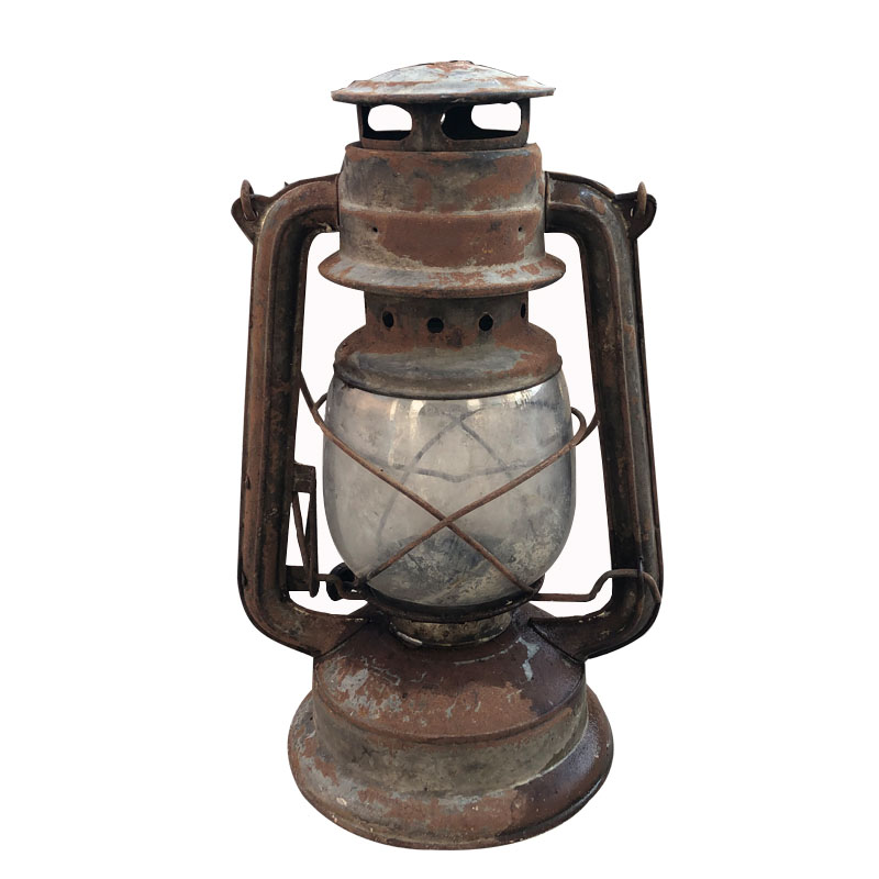 Old kerosene lampFolk objects Nostalgia Collection Antique Antique Decoration Decoration of iron handheld kerosene lamp