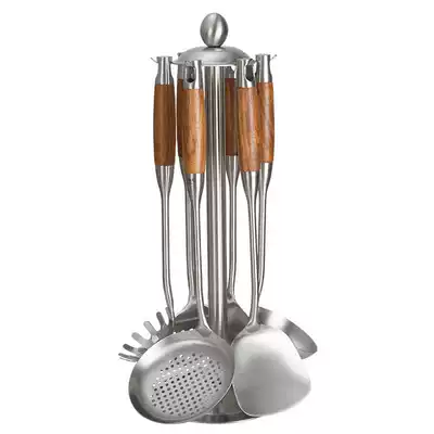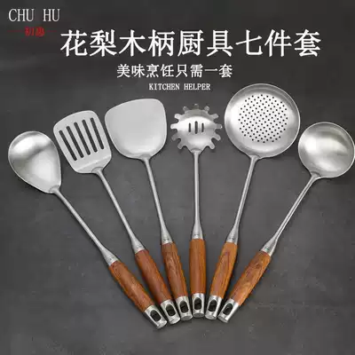 Rosewood solid wood 304 stainless steel anti-scalding spatula household kitchenware set Full set thickened spatula soup spoon leaky spoon