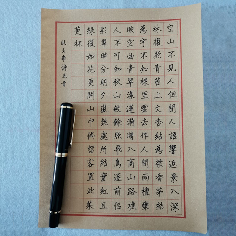 Practice paper hard pen calligraphy work paper grid 16K primary school students' writing competition special writing paper Chinese style retro 30 sheets of kraft paper works Paper 112 grid vertical line book horizontal line book