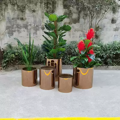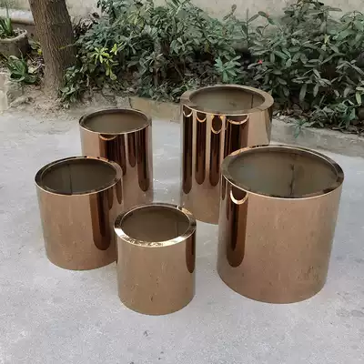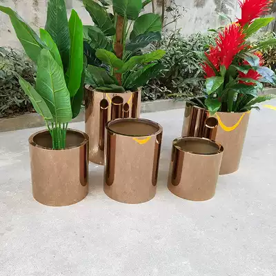 Stainless steel flower pot rose gold cylinder set pot women's clothing store props potted display cylindrical model room