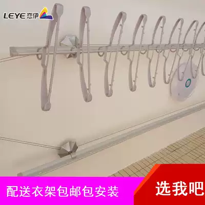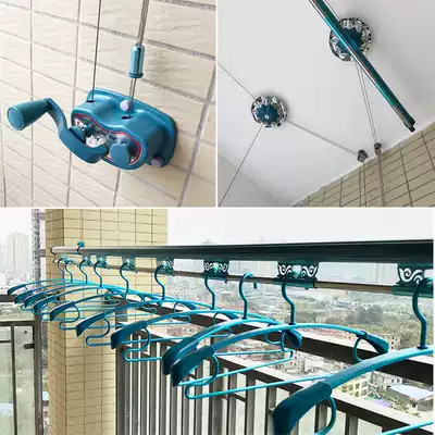 Package installation love Yi hand lifting clothes rack Balcony automatic drying rack Lake blue silver send 15 aluminum clothes rack