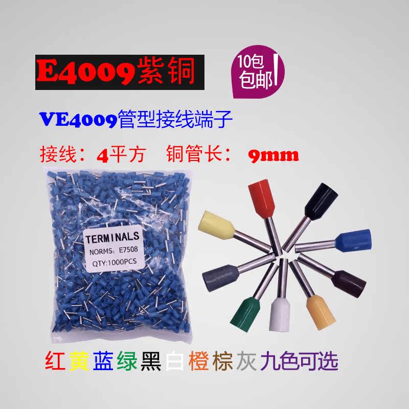 Red copper VE4009 needle type cold pressure terminal E4009 small black clamping type pipe 4mm square wiring terminal copper nose needle shape