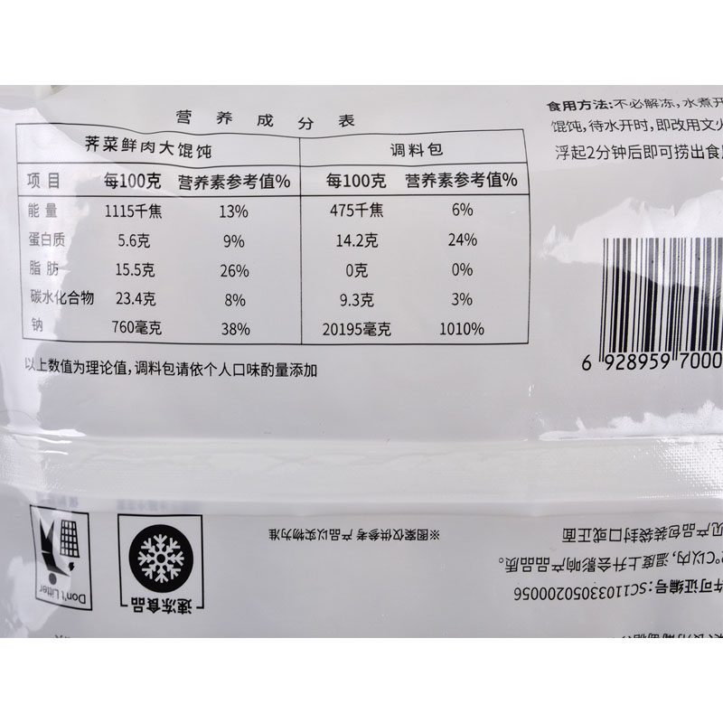 Minrentang Shepherd's Purse Big Wonton 220g Wrap Wonton Dumplings Frozen Instant Breakfast Pasta Frozen Convenience Food