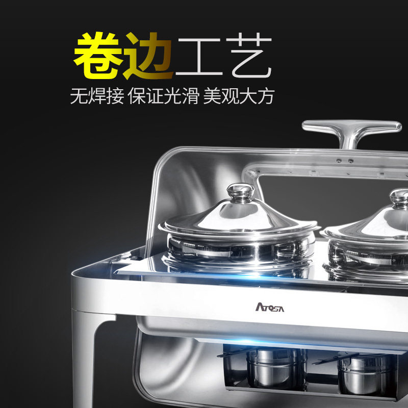 Silver all ATOSA round clamshell dining stove Stainless Steel Dining Stove Hotel Equipment Buffet Stove Insulated Bufie Stove