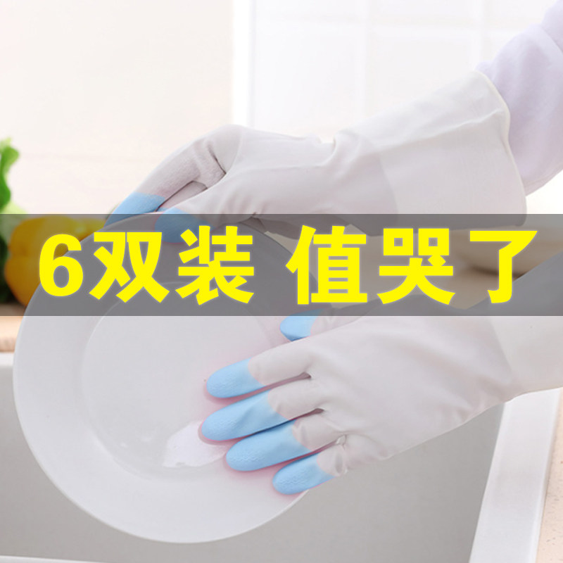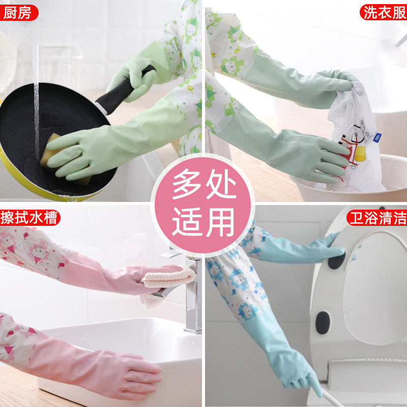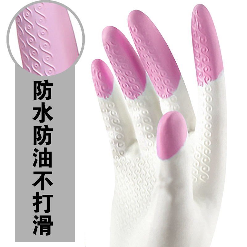 Dishwashing gloves women's plastic rubber waterproof washing clothes plus velvet housework thick rubber brush bowl female wear-resistant