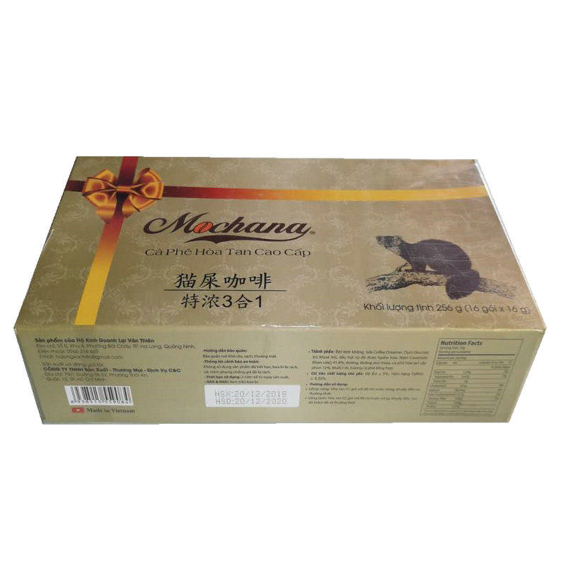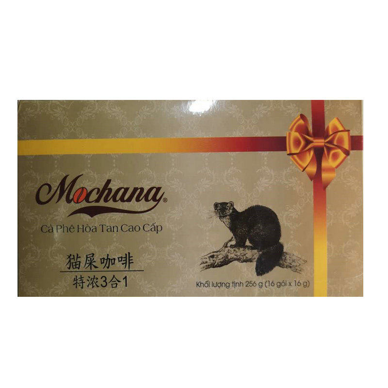 Vietnamese Original Loaded Mochana Ti Divine Special Cat Poo Instant Coffee 256g 16 Bar with two boxes