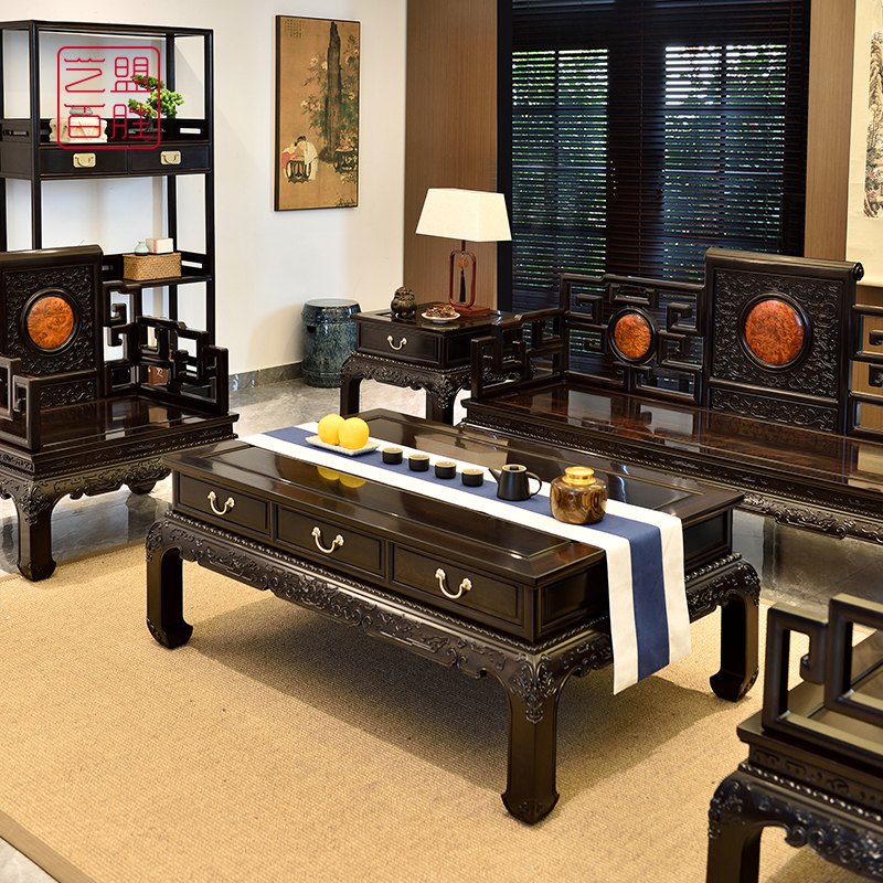 Art franchise Baise Purple Light Sandalwood Sofa Book Roll head Living room East Africa Black yellow Honolulu Classical Red Wood Furniture With Carved Flowers
