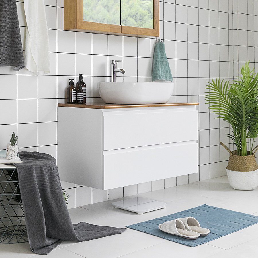 Japan-style Brief Modern Nordic Wind Solid Wood Rubber Wood Terrace Basin Bathrobe cupboard washroom Handwashing desk Customized