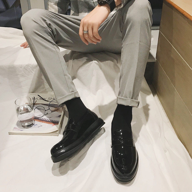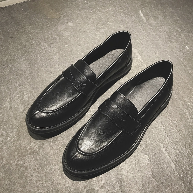 Men's small leather shoes Korean trend shoes men summer bean shoes one foot thick soles and increase high English tide shoes