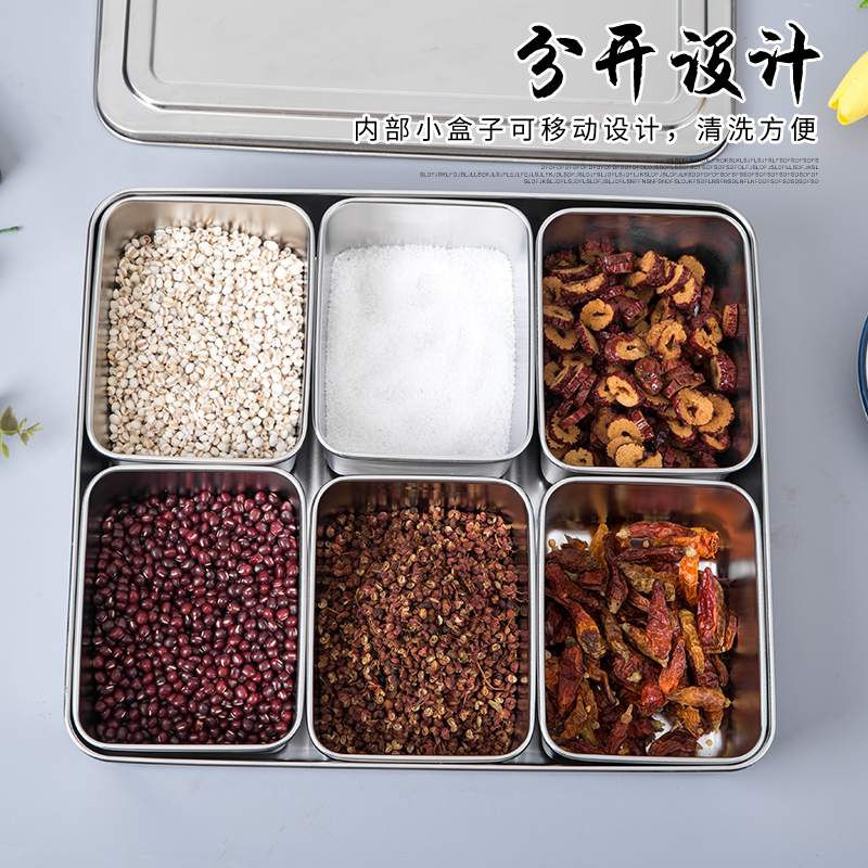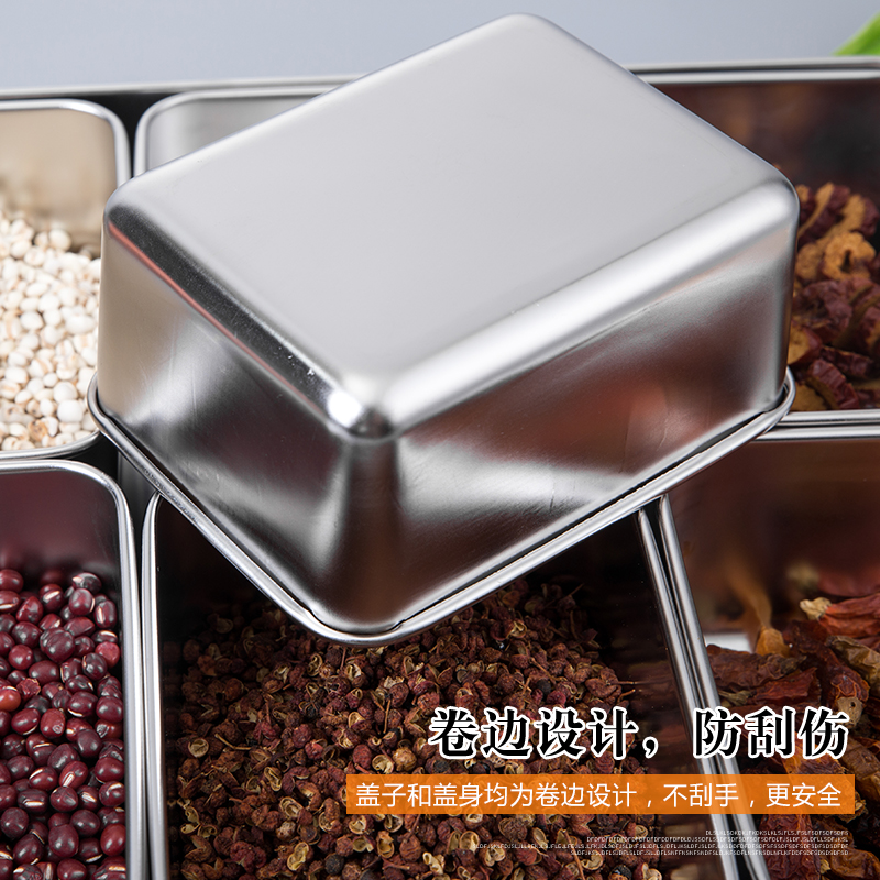 Stainless steel seasoning box home kitchen four-grid seasoning box ice powder ingredient box multi-functional storage Japanese-style sample box