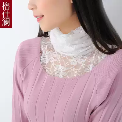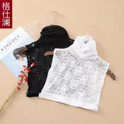 Autumn and winter new large size turtleneck wild collar vest decorative black and white bottoming lace fake collar women