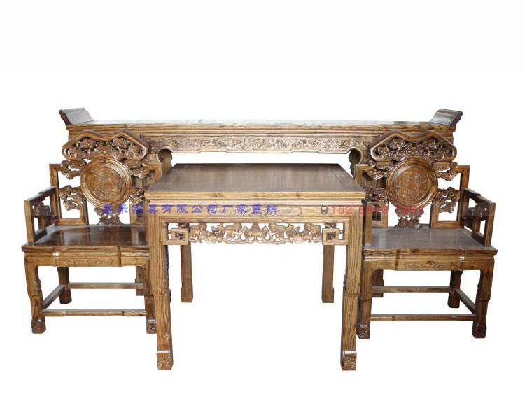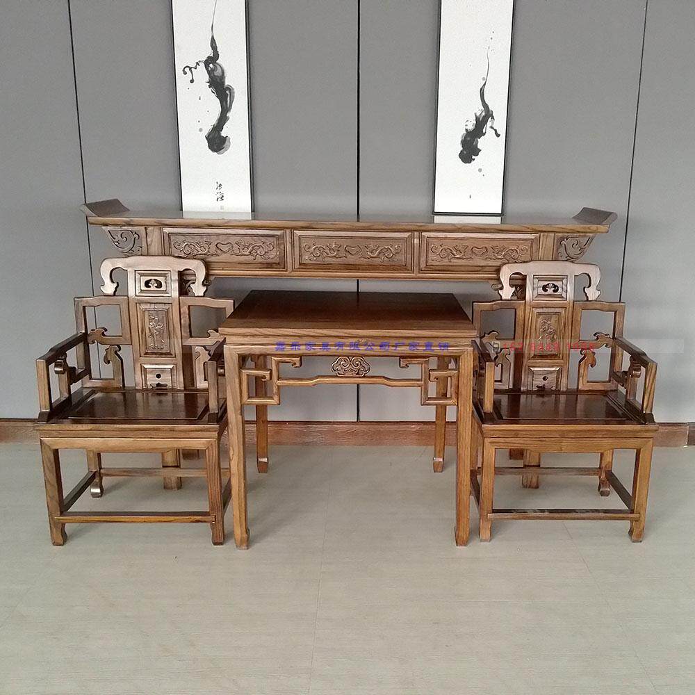 Zhongtang four-piece set six-piece set solid wood old elm living room strip case for table god table Chinese Ming and Qing classical household