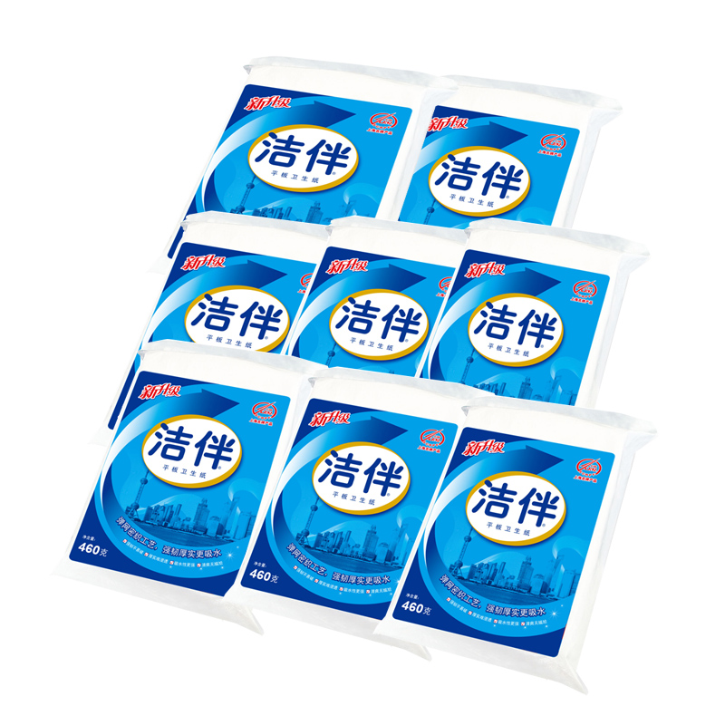 Jie Companion flat toilet paper 460g toilet paper Household toilet paper 8 packs of whole box batch knife cutting paper Jieyun toilet paper affordable package