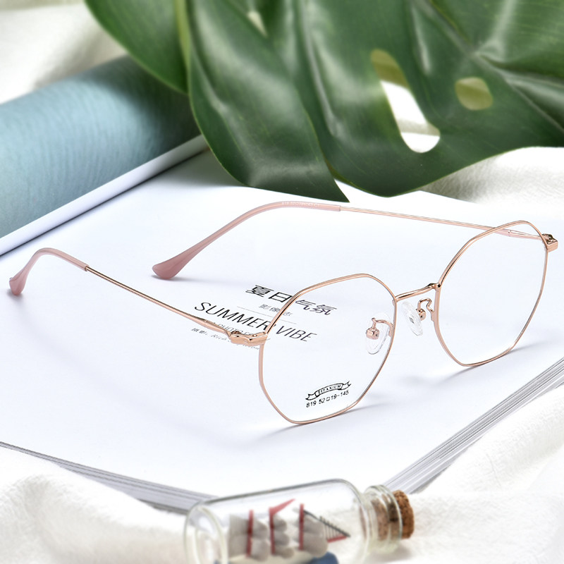 Pure titanium finished myopia glasses women have degree with myopia mirror men glasses frame anti-blue light radiation retro polygon