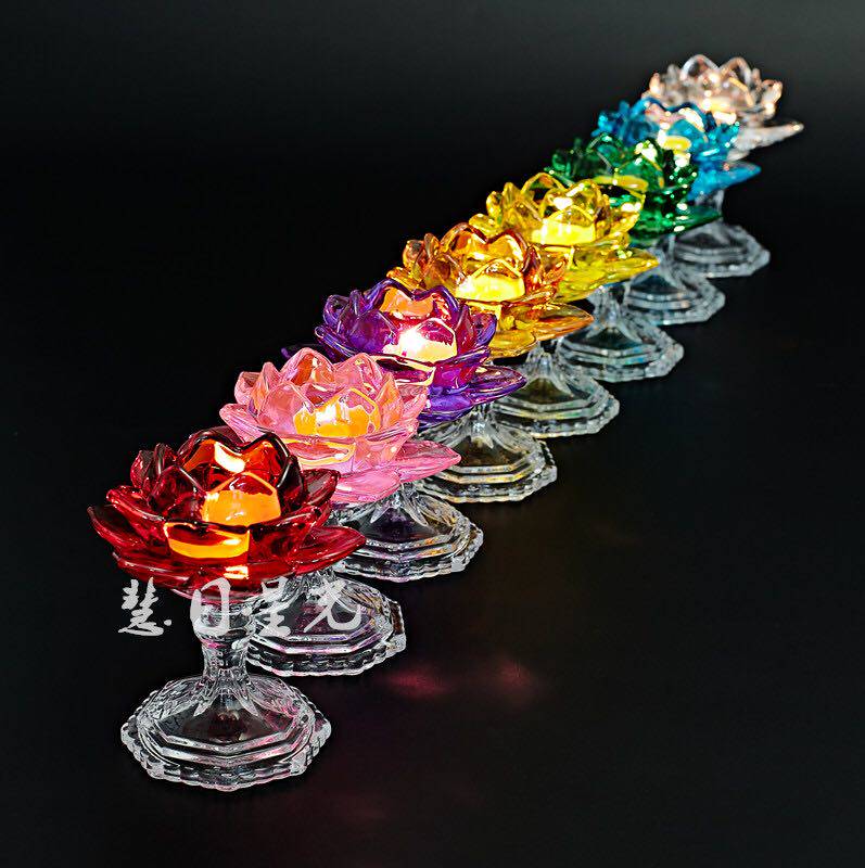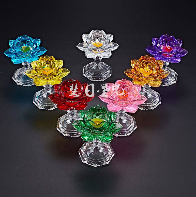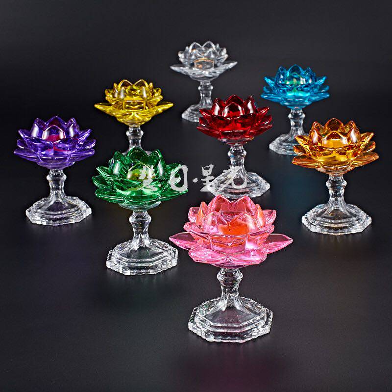 Large Number Seven Color High Foot Crisp Oil Lamp Holder Windproof Crystal Light Base Candle Holder Seven Colorful Candle Lotus Lamp Holder Pendulum