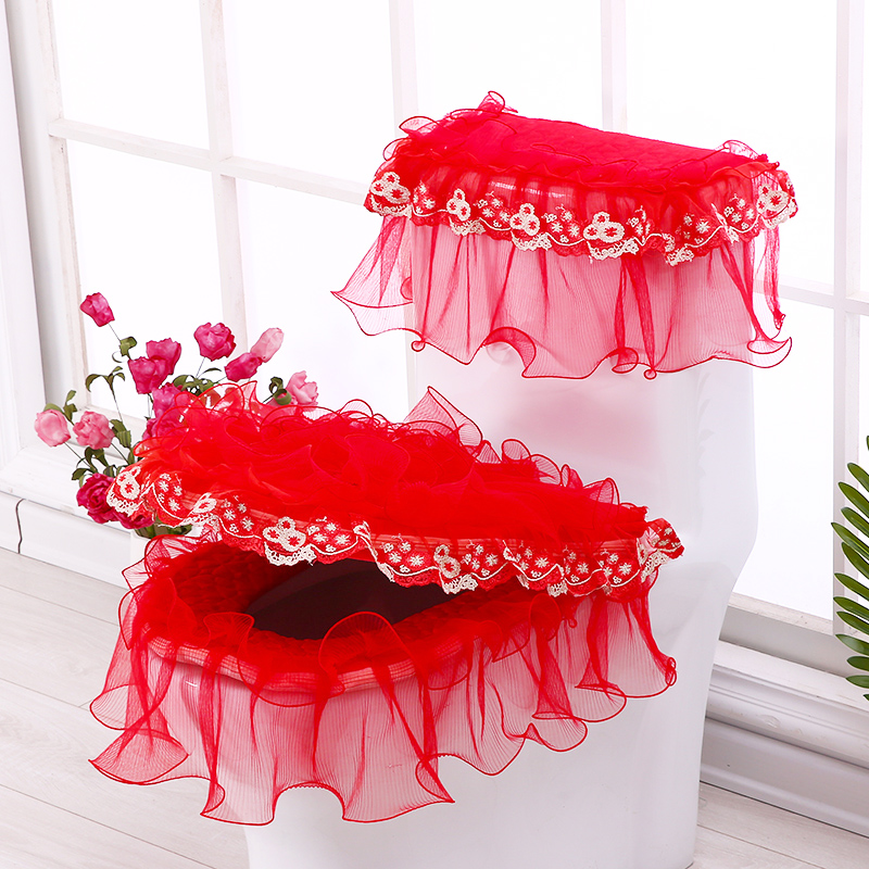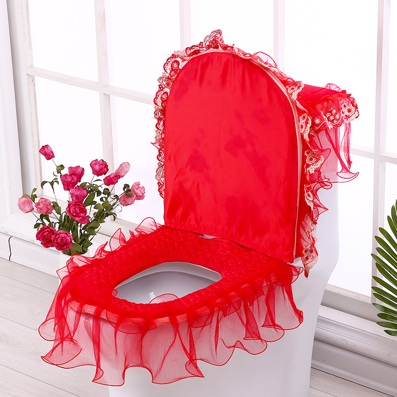 Wedding room decoration toilet three-piece set European fabric lace zipper U-shaped toilet universal cushion Toilet seat cover cushion
