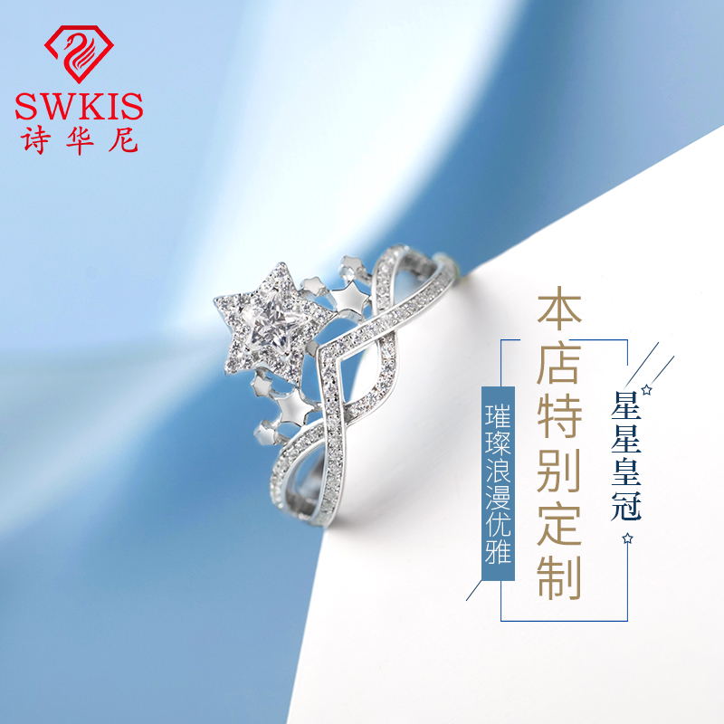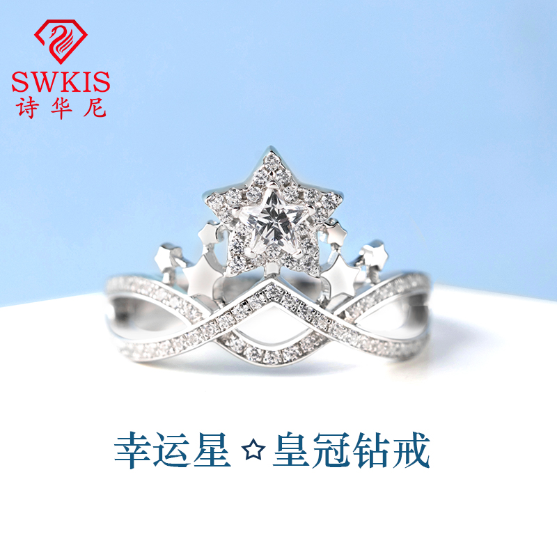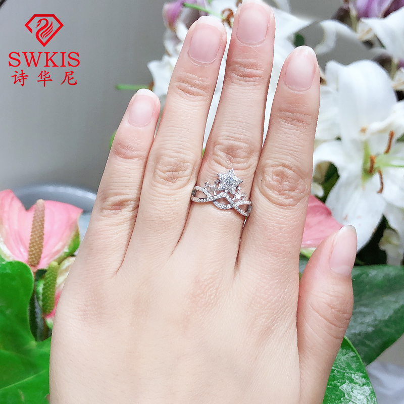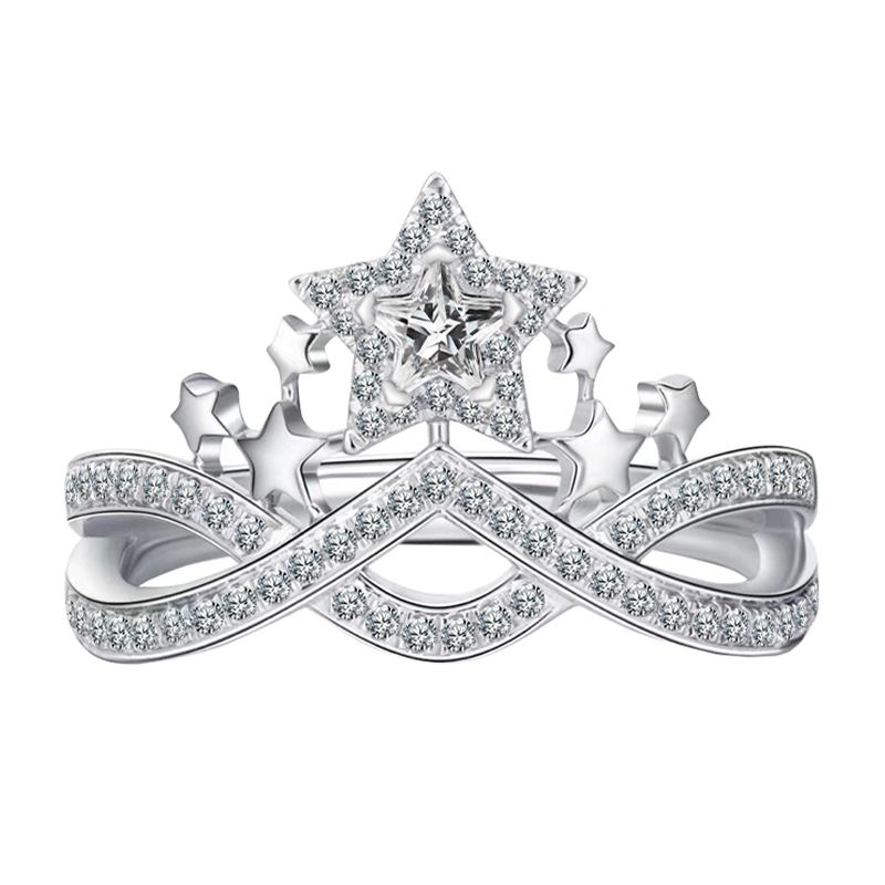 Pentagram Star Drill Crown Ring 925 Pure Silver Plated 18K Golden Japan Temperament Wedding Female small crowd Design cold light wind