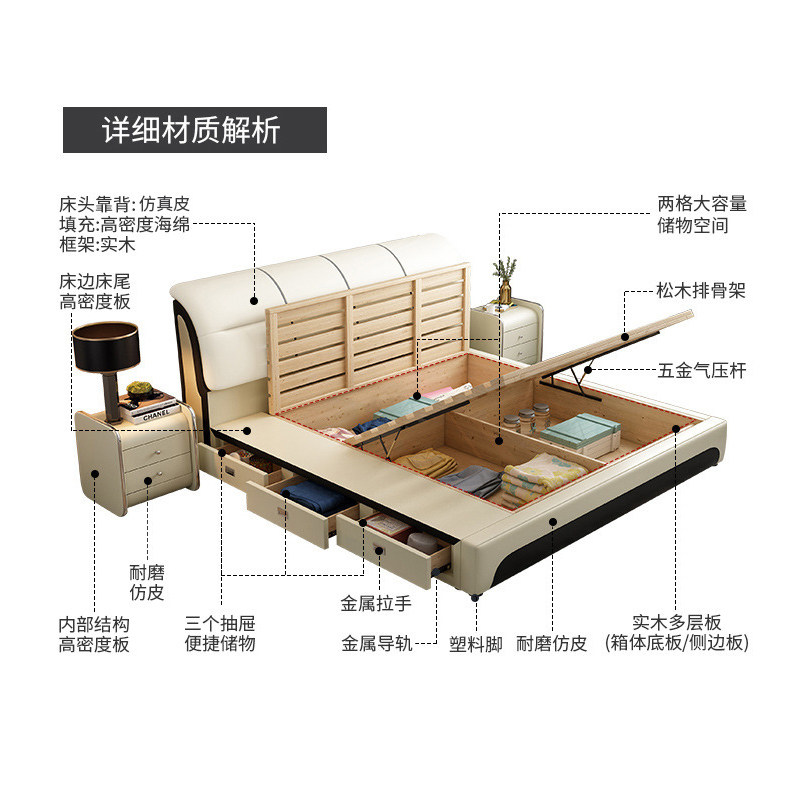 Leather bed 2 cabinets bed 3E coconut palm mattress 2 cabinets bed latex mattress 2 cabinets bed 5D latex mattress 2 cabinets bed ice silk mat mattress 2 cabinets bed cashmere cotton mattress 2