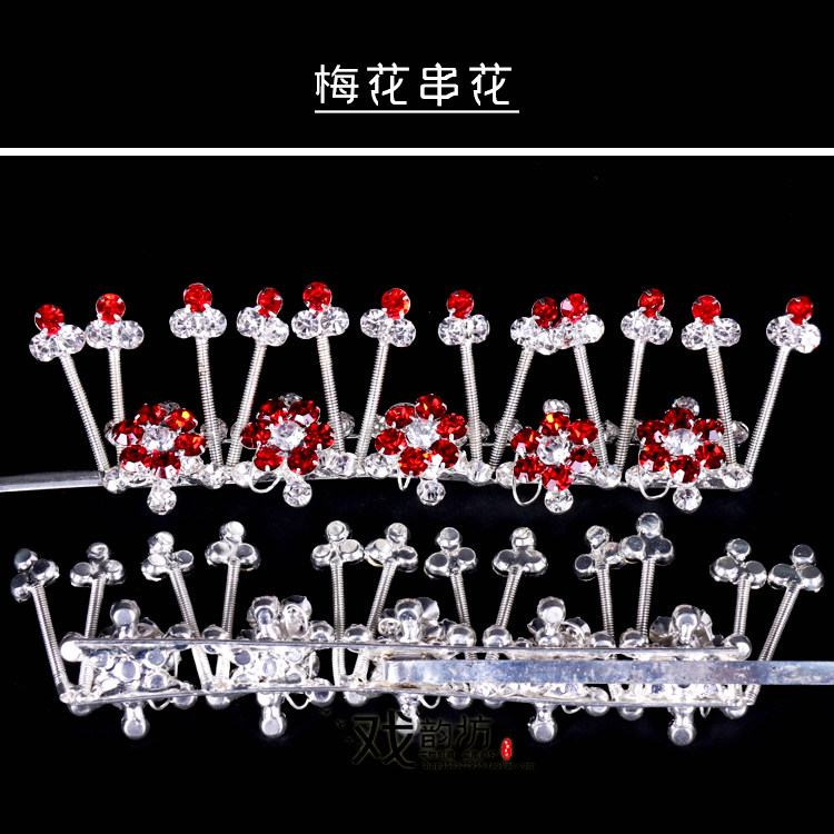 Opera drama Baotou rhinestone headdress head face plum blossom string flower Qingyi Huadan headdress rhinestone double light string flower pair