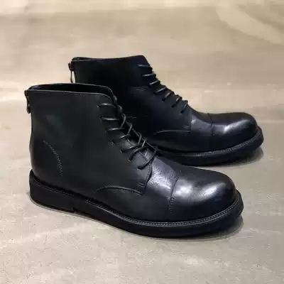 European and American leather men's high-barrel leather shoes men's retro lace-up leather boots trend high-barrel shoes tooling boots handsome boots men