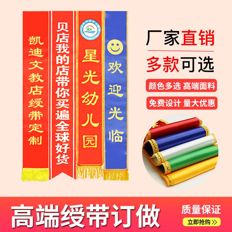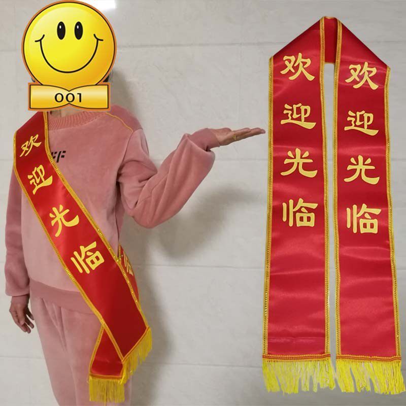 Red gold-rimmed satin ribbon welcome belt etiquette belt custom-made adult students and children with custom-made blank ribbon