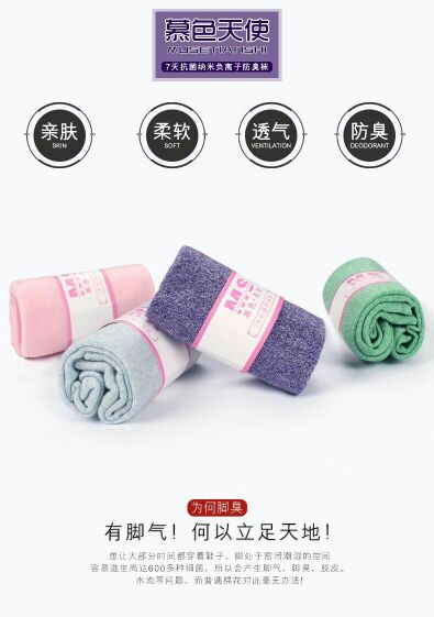 Mousse Angel Lady Deodorant Socks Seven-day Nano Negative Ion Antibacterial Deodorant Socks Breathable Sports Short Socks