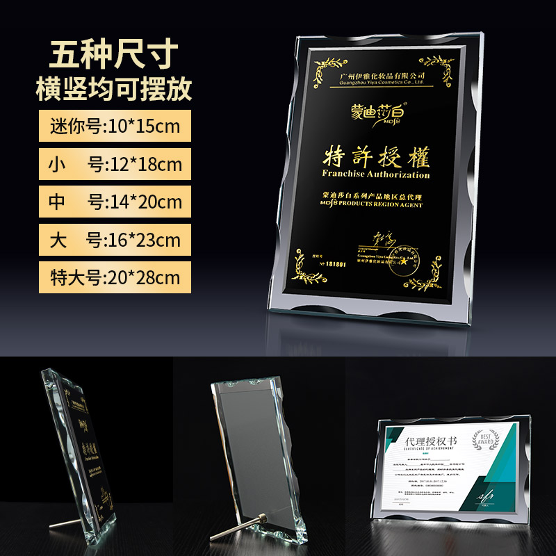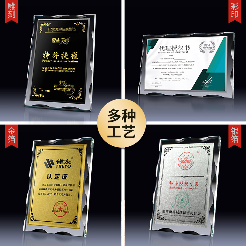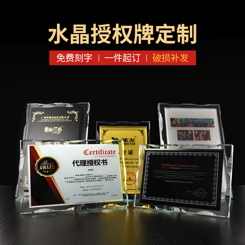Authorized card custom-made crystal medal creative gold foil certificate trophy production high-end honor plaque souvenir