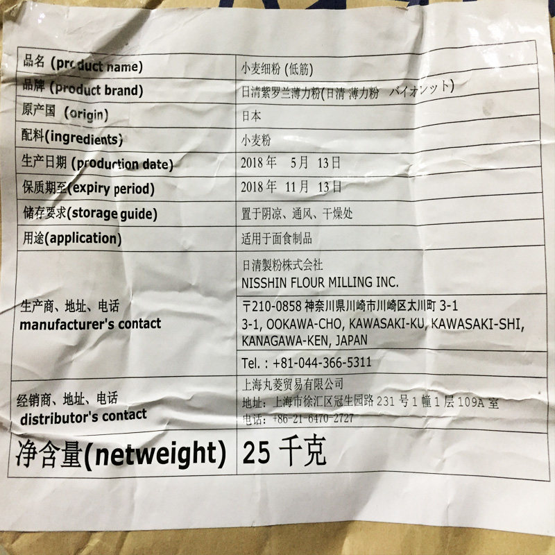 Japan Import Baking Raw Material Day Clear Powder Violet Low Gluten Powder Thin Power Wheat Flour Cake Powder Original 25kg