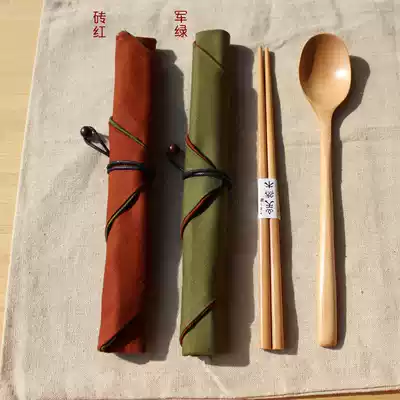 Wooden environmental protection chopsticks Portable wooden tableware set Travel Japanese chopsticks spoon Bag spoon chopsticks 3-piece set