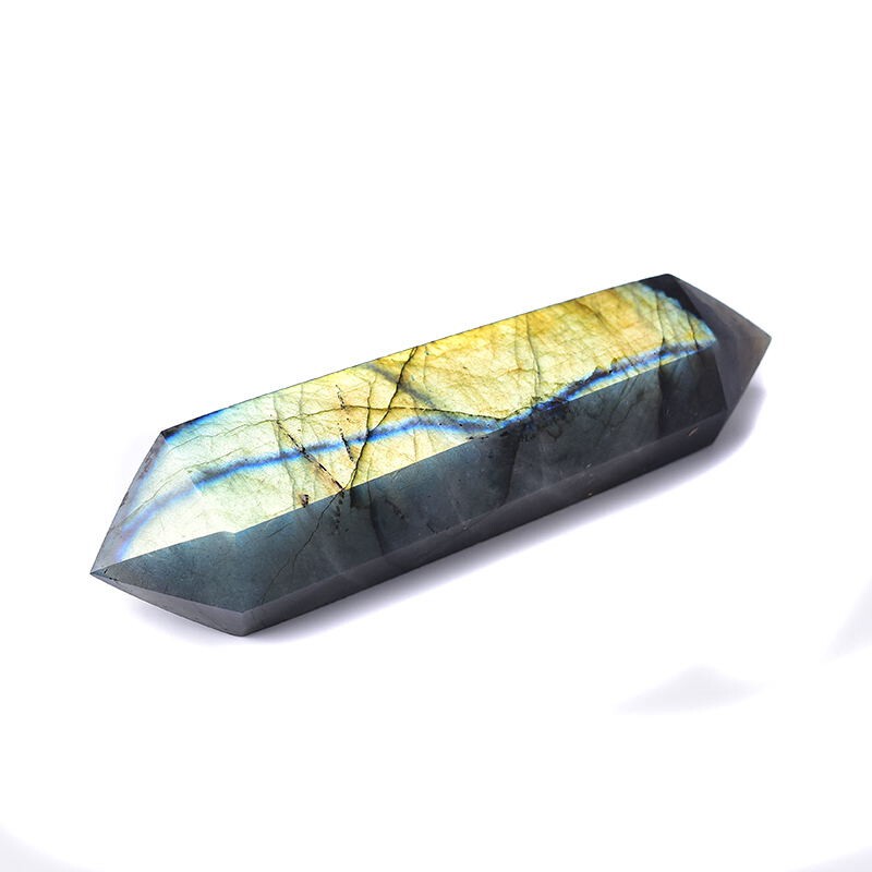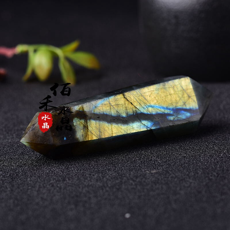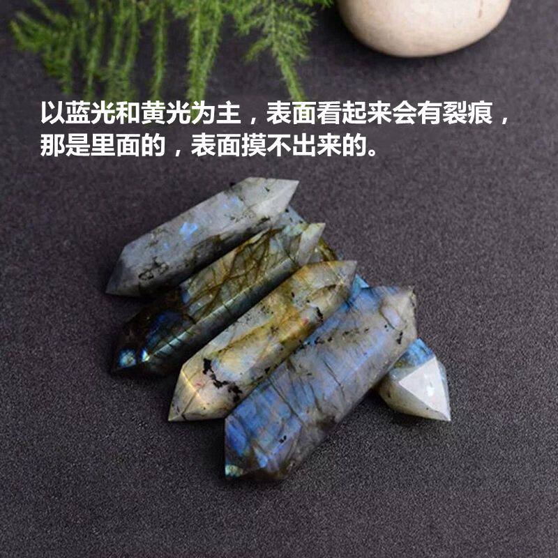 Natural moonstone labradorite double-pointed hexagonal feng shui decoration energy stone raw ore raw stone cutting and polishing
