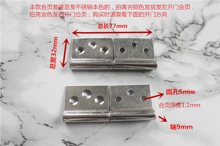 Stainless steel detachable hinge flag-hinged fireproof door flag-shaped flag type hinge 3 * 1 2 inch hinge