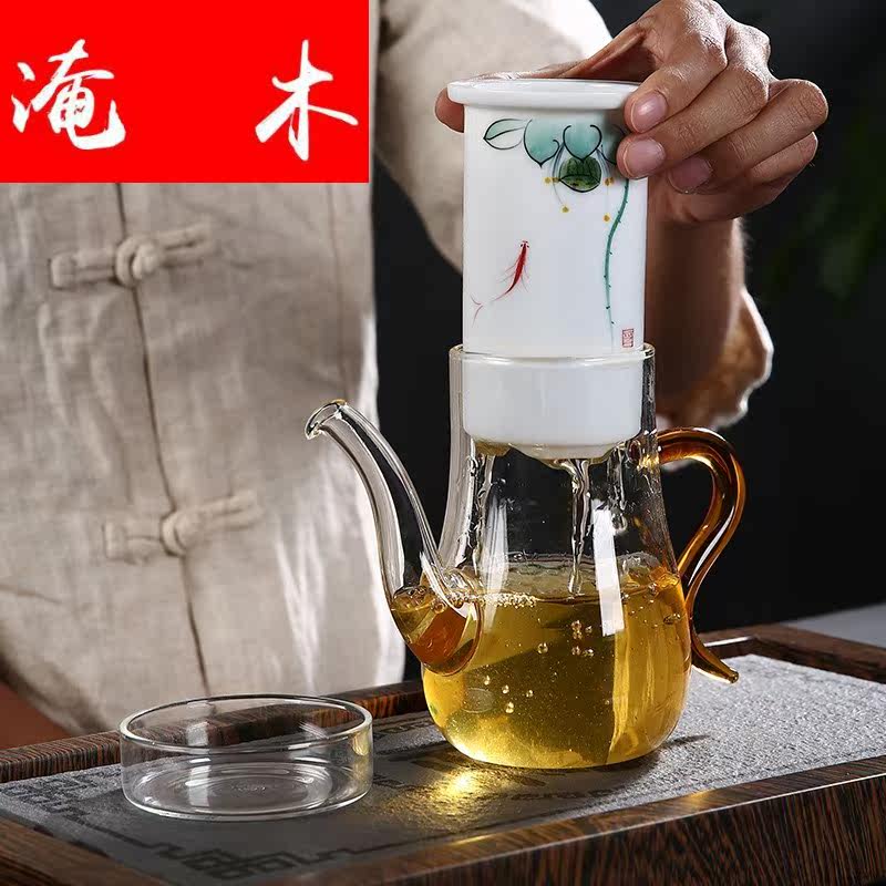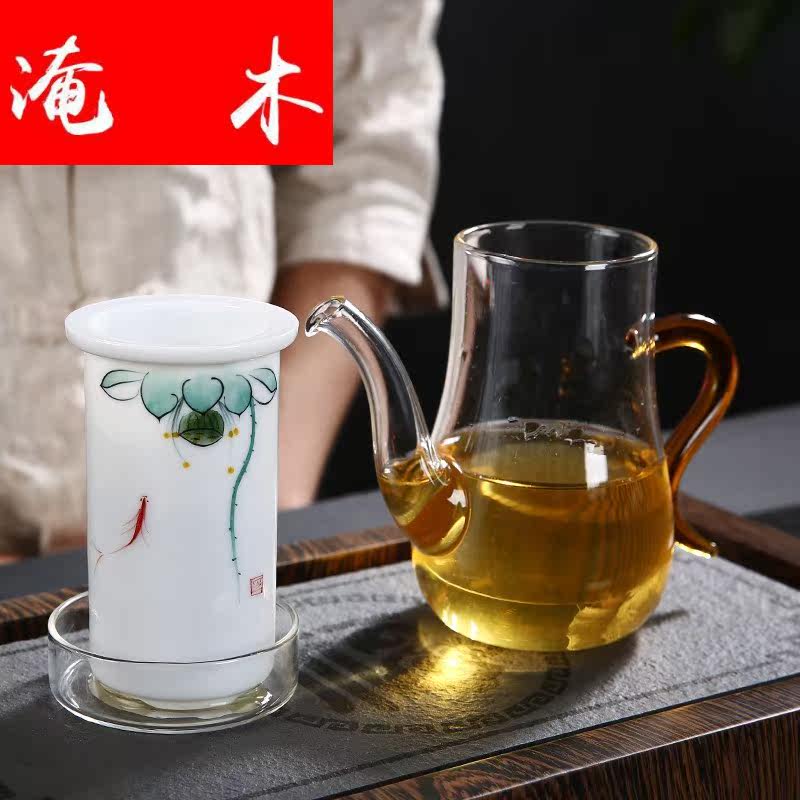 Glass red tea teapot brewed teapot dehua white jade porcelain teapot handdrawn ceramic bile filter bubble tea tea