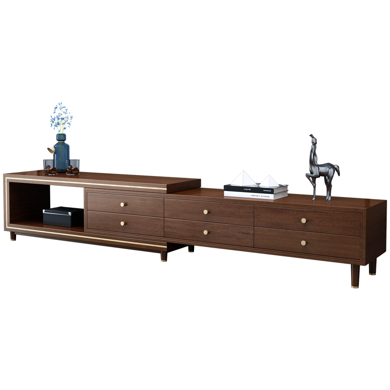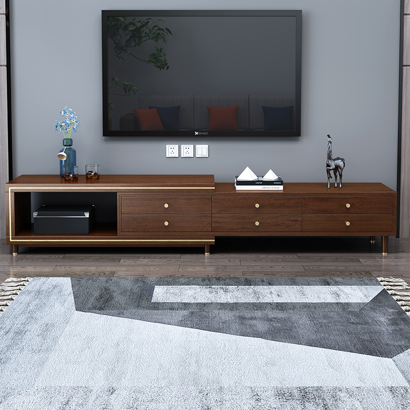New Chinese solid wood TV cabinet Walnut film and television cabinet Light luxury retractable TV cabinet Simple household 2 meters to the ground cabinet