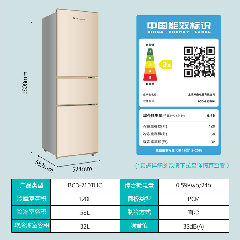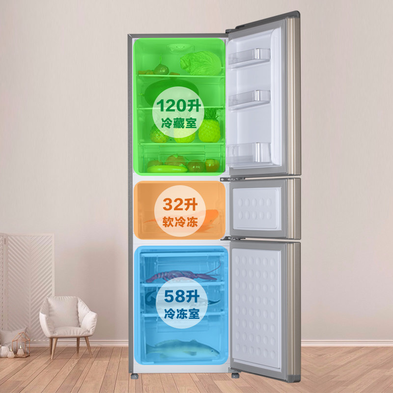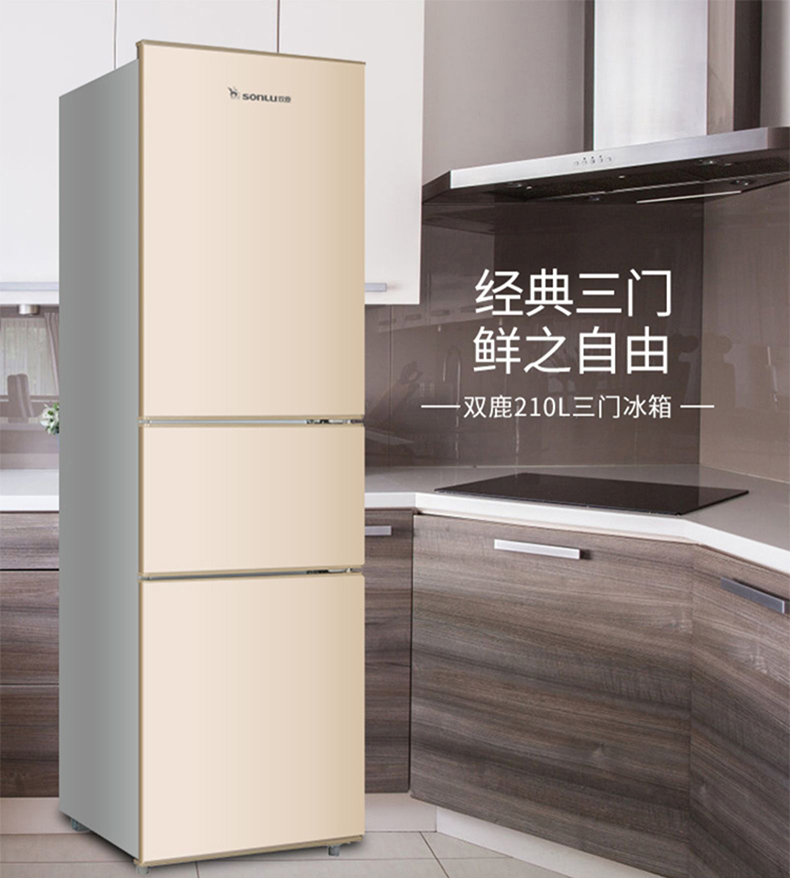 Shuanglu 210 Liter Refrigerator Three Door BCD-210THC Home Energy Saving Low Noise Direct Cold Rental Dormitory Large Capacity