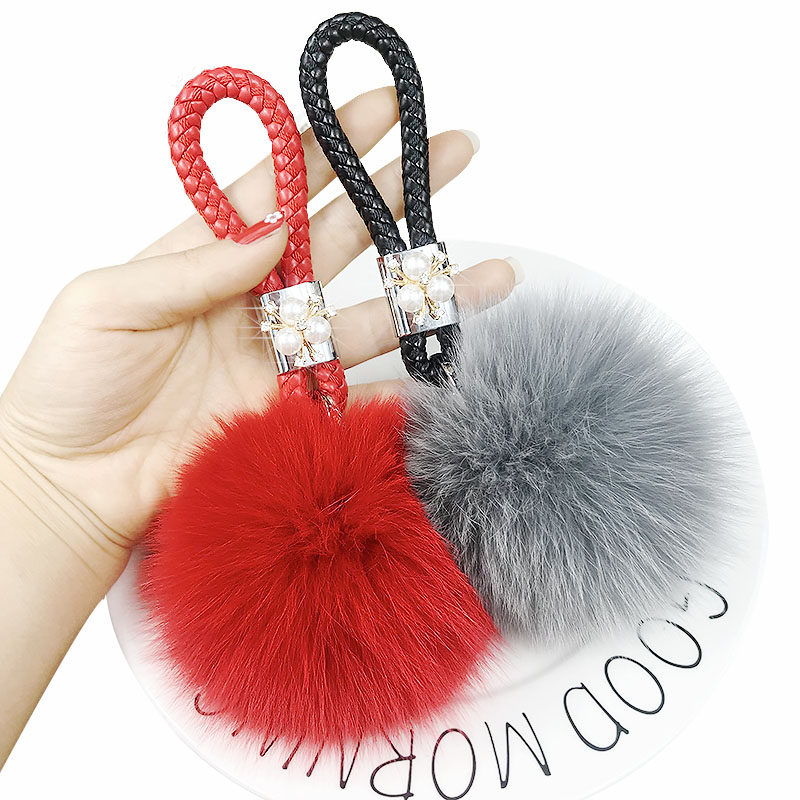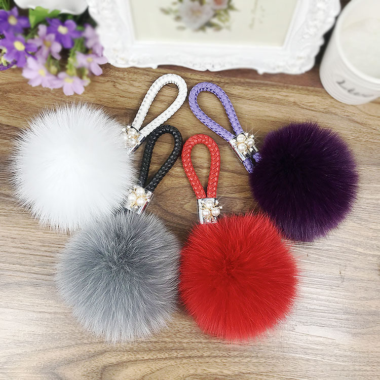 Inlaid drilling large red leather rope large red fox wool ball inlaid with black leather rope grey fox wool ball inlaid with purple leather rope enchantment purple fox wool ball inlaid with white leather rope white fox wool ball inlaid with large red leather